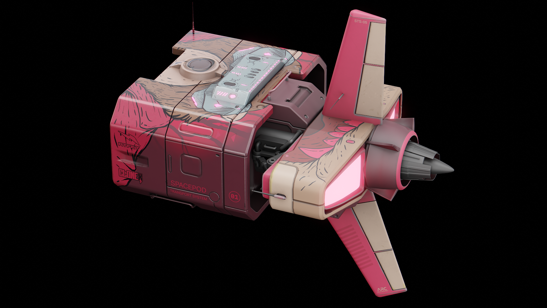 In addition, I was responsible for the art direction alternate POD variations - designed as if customized by their owners beyond the original factory versions. Although these personalized designs didn’t make it into the final animations due to creative decisions.