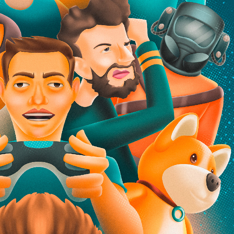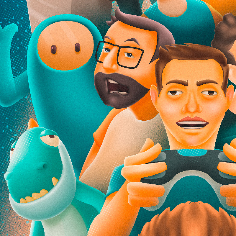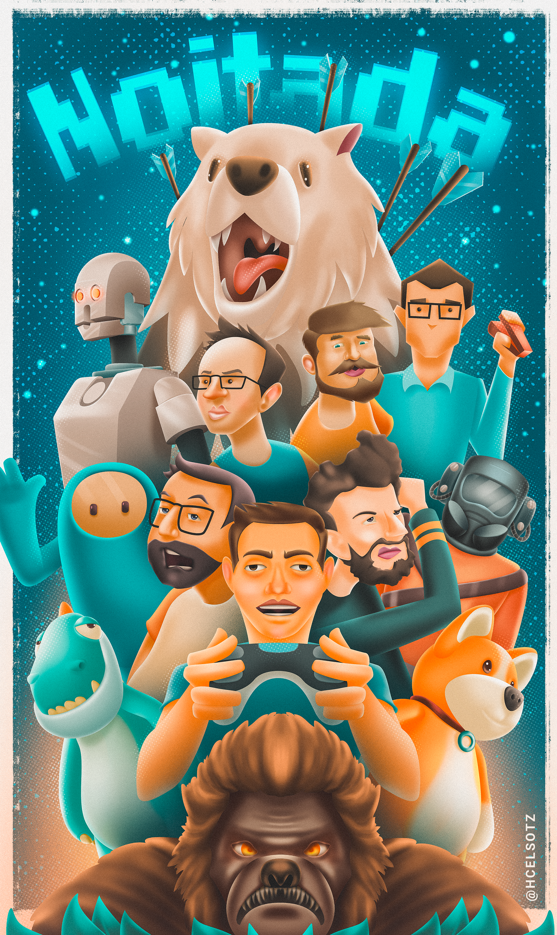 Uma fanart feita para os streamers Alanzoka, Vx, Cap, Mr.Fall e Dino. Nessa art eu usei elementos dojogos mais memoráveis da "Noitada".