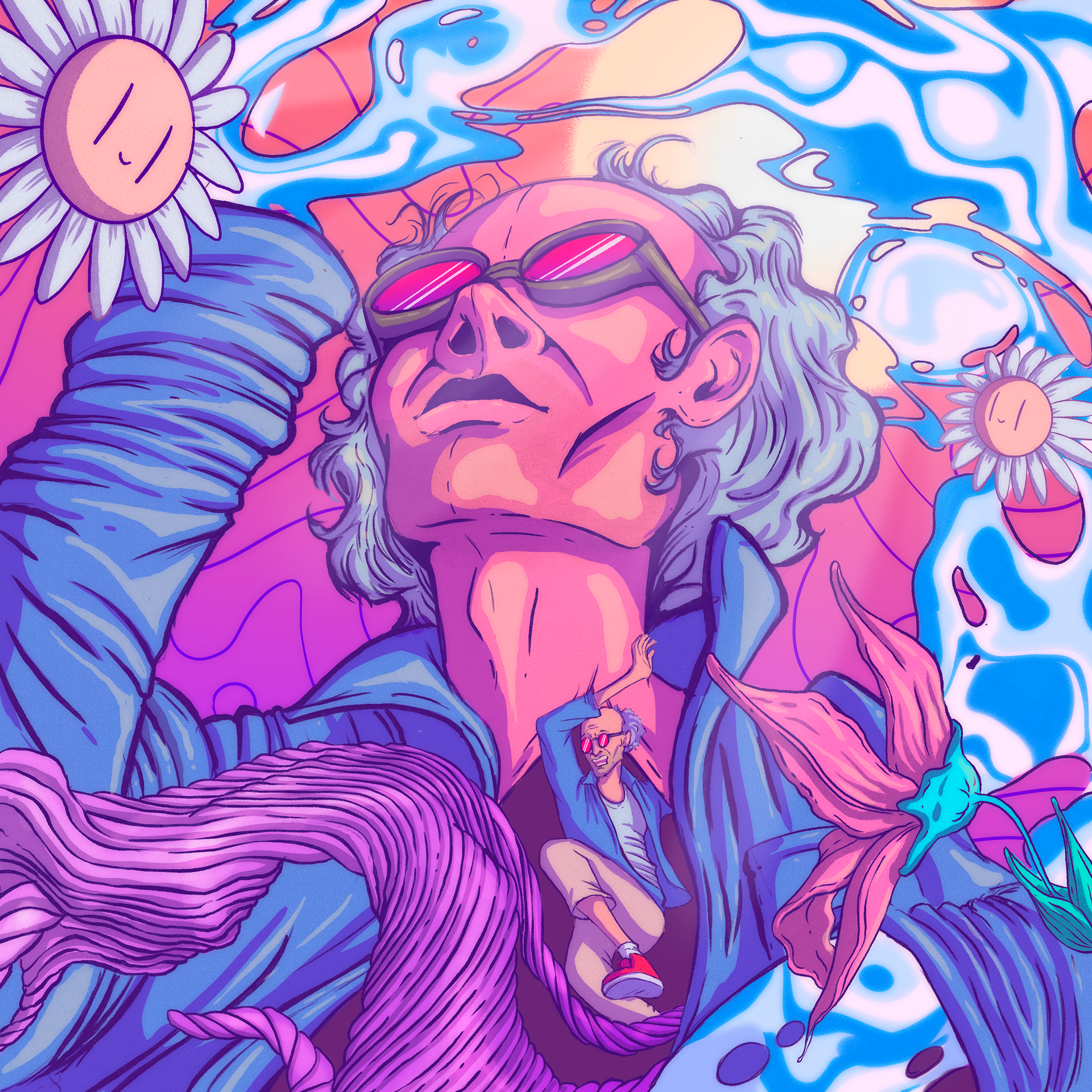 Ilustração para o single Recompensa da banda Zé Zen e os Saposicodélicos.